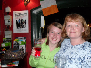 Saturday, we got up, got more coffee at Arabica (I think I'm in love with that place) I showed them the university, which is when I realized that I honestly think I've spent more time at Stables then in the library!!! Although I may have changed that this week. This is the first week in awhile where I didn't set foot inside Stables. We ate lunch at a restaurant called Chocolat. You can probably guess by the name of it that it was DELICIOUS. I had a pesto chicken fettucine. We all got a dessert platter with three 3 different types of desserts on it. Yum yum yum. After that, we caught a bus to Bunratty. I was hoping to go inside the castle since I was in need of going to a new castle, but my mom and Bonnie didn't want to go inside since it was more expensive. They wanted to check out the gift stores that were around it. This is when I was starting to get antsy. In addition to going to many of the same places in Limerick, I've also been inside numerous gift shops and browsed through a ton of tourist knickknacks. I was getting slightly bored. I tried to stay chipper, but my patience with shopping was waning. I did end up buying a photography book of Ireland. We also went inside one of the oldest pubs in Ireland, Durty Nelly's, was established in 1620!